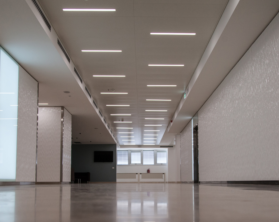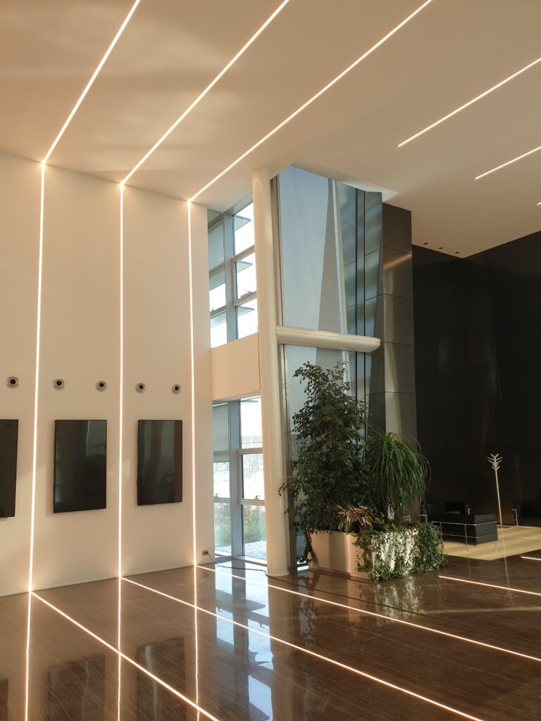 Modular system for direct, diffused, accent or wallwasher, made of 62×32 mm painted or anodised extruded aluminium empty profiles, available in predefined lengths or cut to measure. Available in wall-mounted, ceiling-mounted, suspended, trimless recessed or recessed with super-slim 5 mm. width edge trim versions. To be integrated with linear LED sources, LED spotlights, complete with 50/60 Hz 230/240 V electronic power supply. To be completed with Light Proof system side end caps, opal white polycarbonate diffusing screen, quick mounting extruded aluminium shapers (for linear LEDs and spotlight LEDs) or closing profiles, available in predefined lengths or cut to measure, and mounting brackets or suspension cables. IP20 or IP40 protection degree depending on the selected lighting combinations.