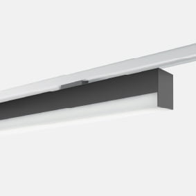 Profilo da binario Eurostandard 230V per illuminazione diretta diffusa, per sorgenti lineari LED. Alimentazione integrata, completi di adattatore Eurostandard Corpo in estruso di alluminio. Finitura verniciata o anodizzata. Schermo diffondente in PC opalino bianco. Grado di protezione IP40.