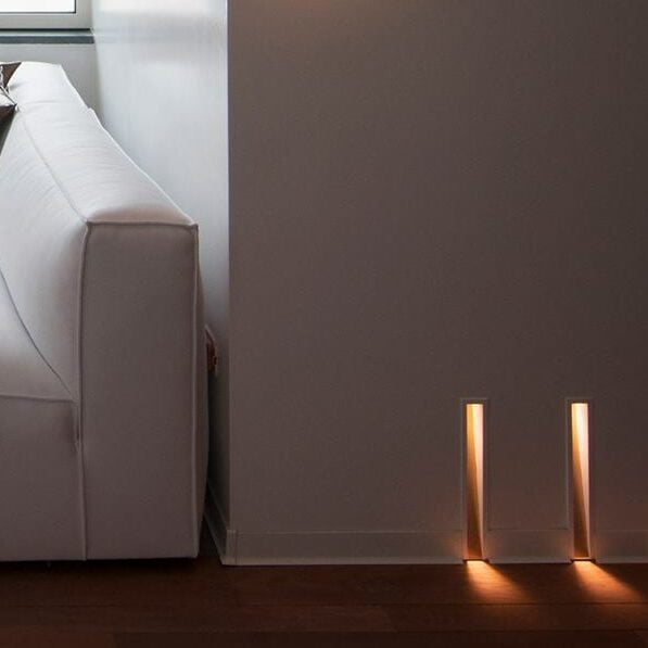 Apparecchio da incasso a parete per illuminazione segnapasso direzionata con angolo di 20°, per sorgente LED integrata con alimentazione remota disponibile come accessorio. Corpo e cornice di battuta in metallo verniciato. Installabile anche in pareti e soffitti in calcestruzzo mediante apposita cassaforma in lamiera zincata disponibile come accessorio. Grado di protezione IP20.