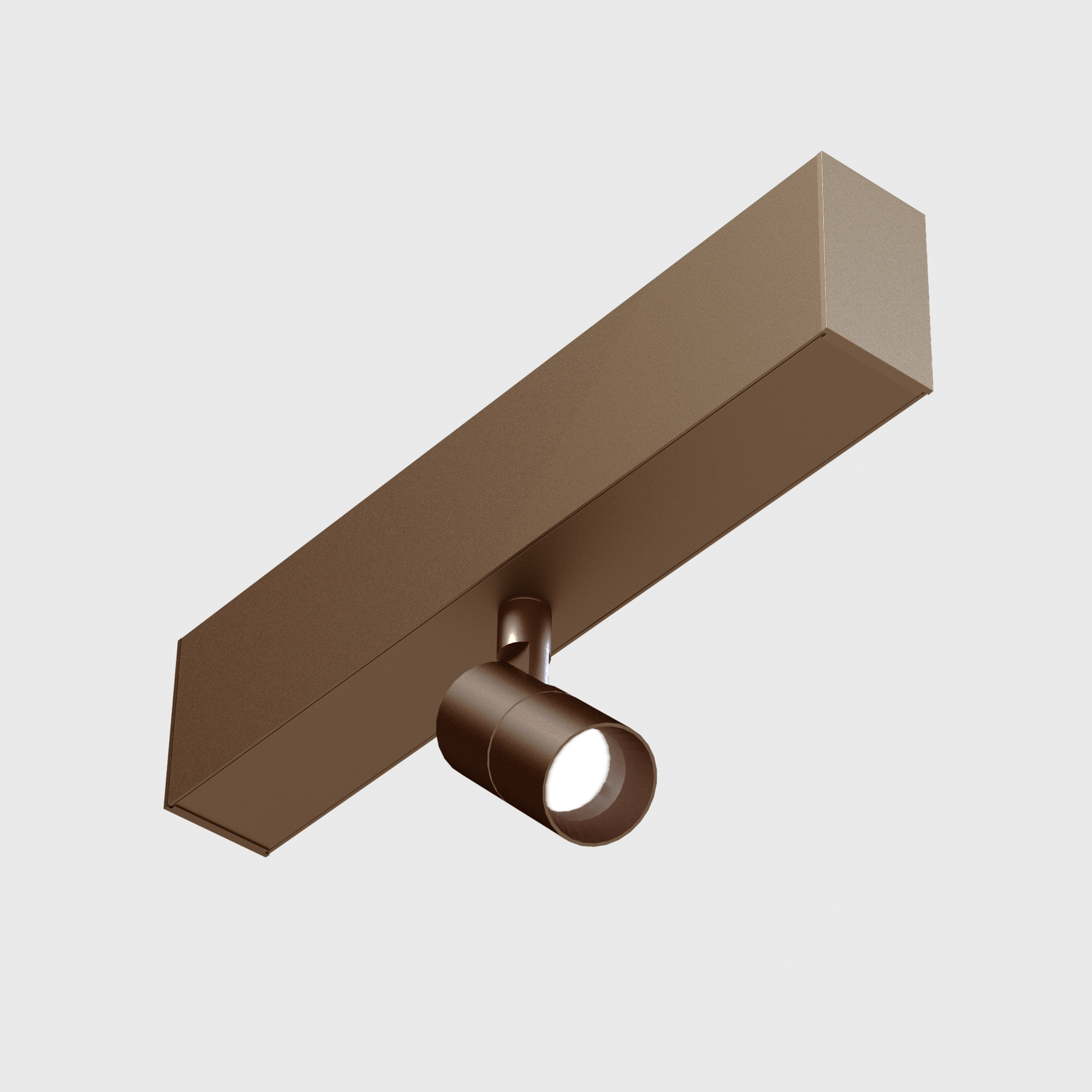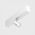 Elemento luminoso per sistema 40 mm. Gruppo ottico realizzato in alluminio, led chip on board ad alta efficienza 8W cri >90, lente in policarbonato, snooter frontale in alluminio. Snodo che permette una rotazione di 355° sull'asse verticale e 90° sull'asse orizzontale. Fissato su piastra in estruso di alluminio completo di driver Dali.
